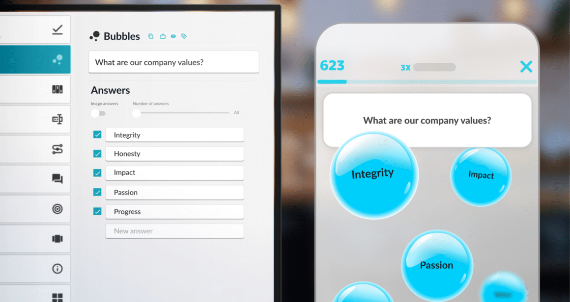 Bite-sized learning with impact – select from our suite of quick quizzes and fun skills games that will have your trainees tapping, swiping and sliding their way to success. Upload correct and incorrect answers along with a few close calls to keep it interesting. Drag and drop in fun gaming favorites including satisfactory sound effects, point-score celebrations and motivational captions.